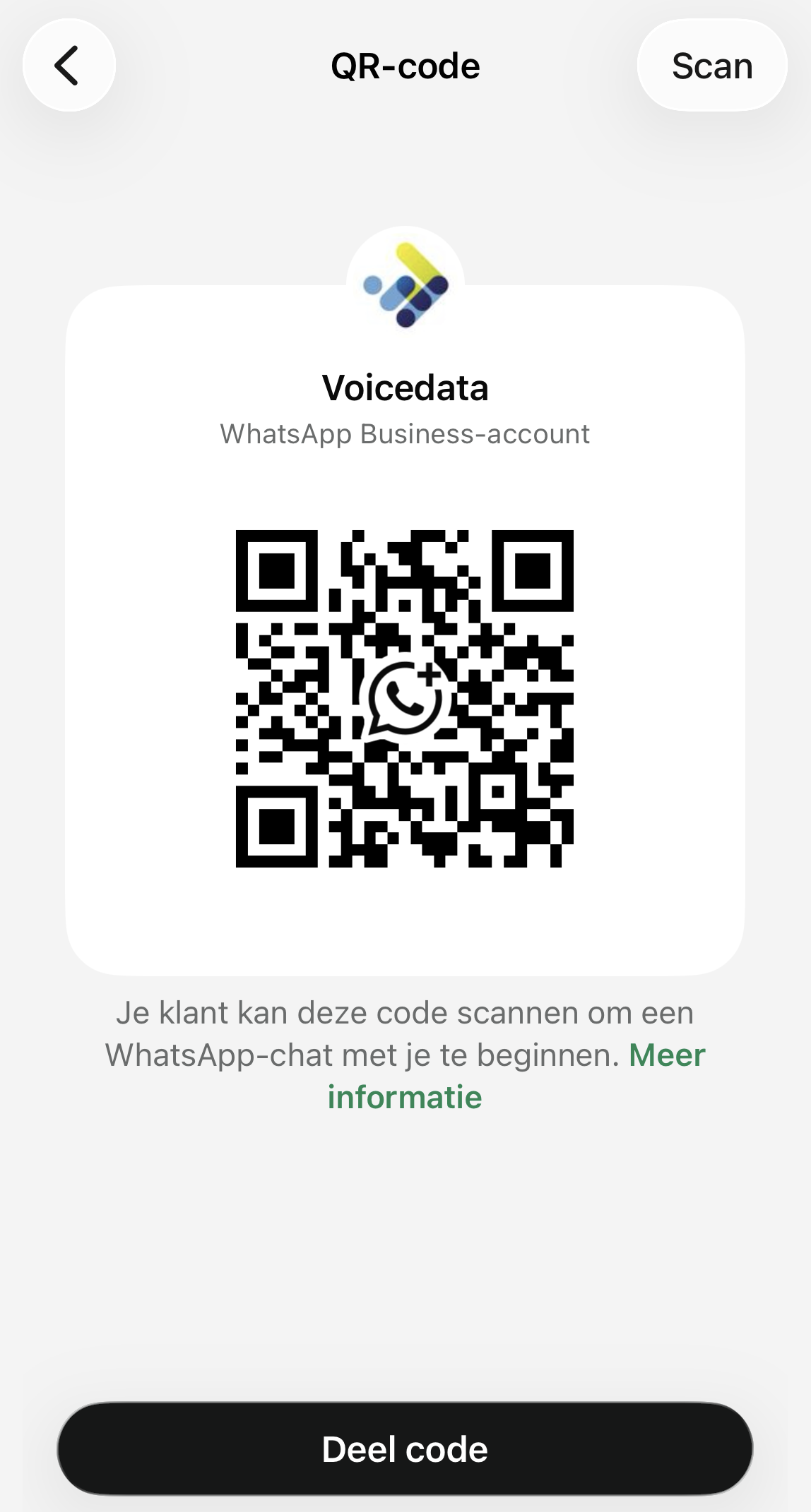 Whatsapp Business generereert voor ieder account een korte link inlcusief QR code. De links staan in deze sectie vermeldt en kun je kopieren of delen met iemand vanaf je mobiele telefoon.