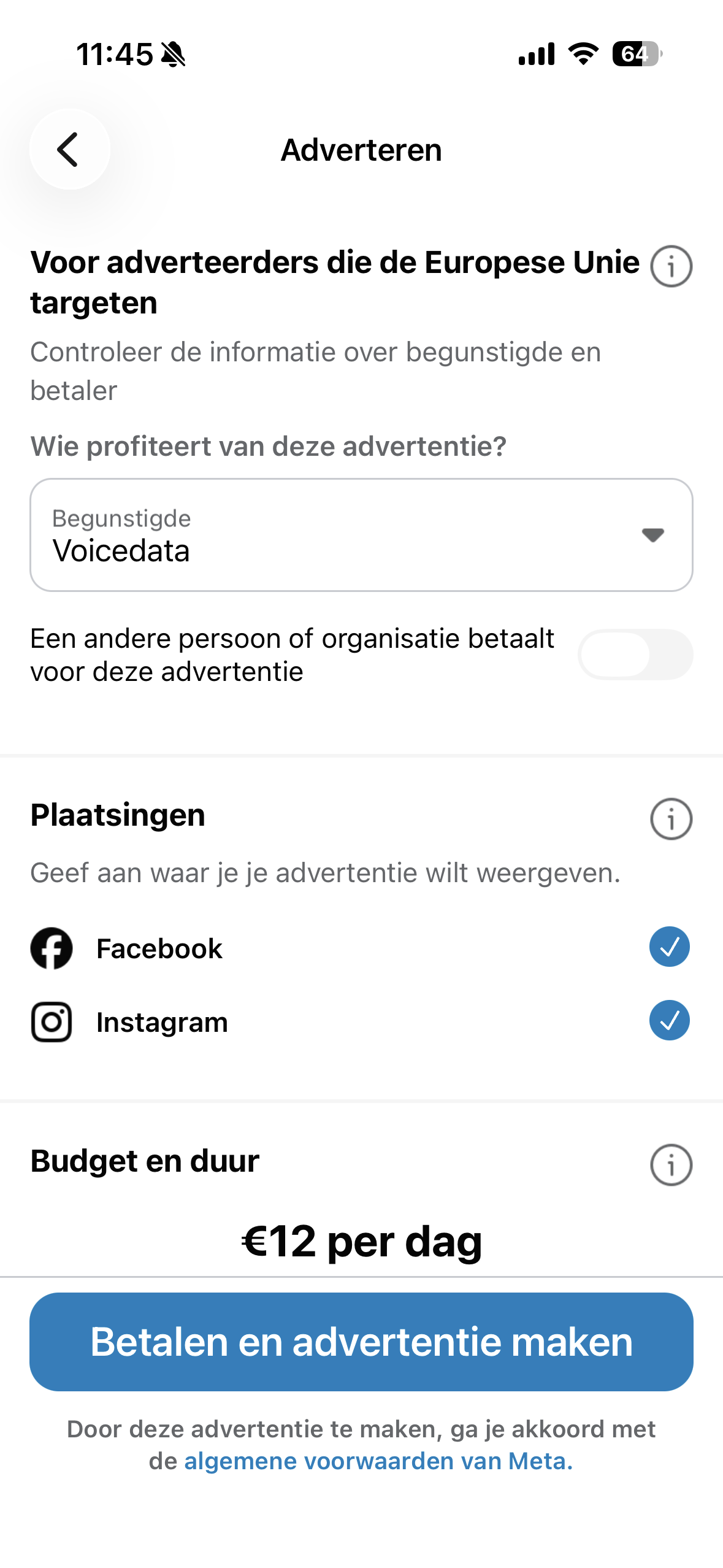 Let op: Adverteren gaat altijd via je META Business profiel. Degene die dit instelt moet dus een Facebook Business inlog hebben en daar ook administrator van zijn. In Facebook Business staan jouw bedrijfs- en betaalgegevens.