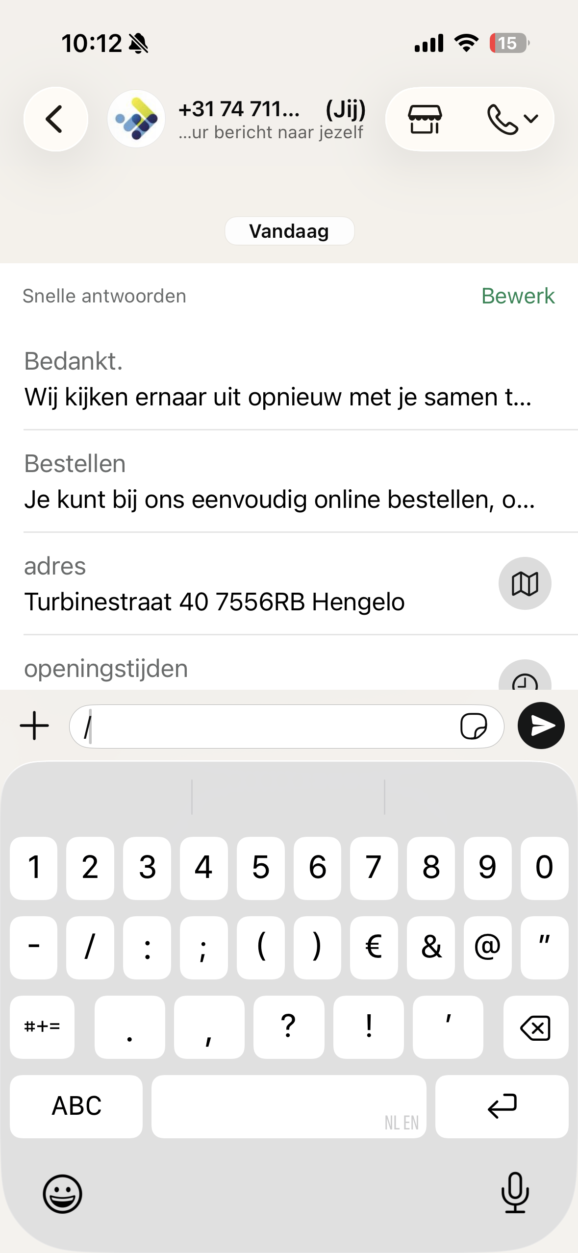 In een chat kun je dan op de slash klikken / en je snelle antwoorden verschijnen. Hierdoor bespaar je veel tijd en stuur je een perfect antwoord die je vooraf hebt gedefinieerd.
